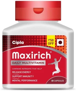 Maxirich contains a wide spectrum of vitamins and minerals. It helps combat weakness, improves immunity, and supports recovery. Available at approximately ₹200–₹400, it’s widely recommended by healthcare professionals. Cipla is one of India’s most trusted pharmaceutical names. Maxirich showcases its expertise in developing reliable multivitamin solutions. Its inclusion reflects strong credibility, medical trust, and widespread availability.